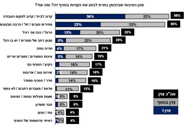 בהשוואה לתקופת המחקר הקודמת ניכרת עלייה בחשיבות של מחיר כגורם לבחירת סניף לביצוע קניות, בעוד שחשיבותם של הגורמים הרגל, מגוון מוצרים וחנייה פחתה בתקופת המחקר הנוכחית.