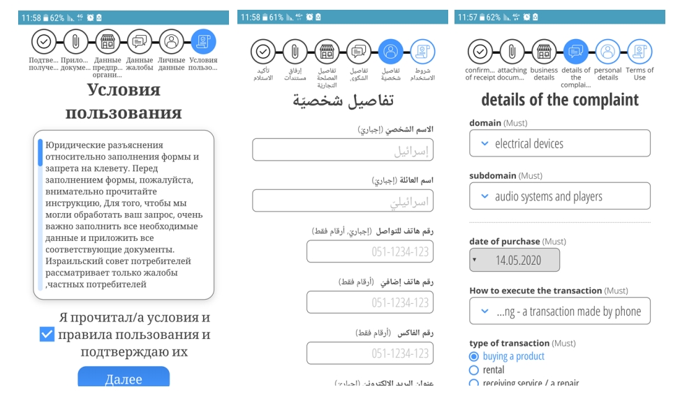 המועצה לצרכנות ממשיכה להנגיש את השירות לצרכנים והרחיבה את האפשרות להגיש תלונות באפליקציה גם בערבית, אנגלית ורוסית.