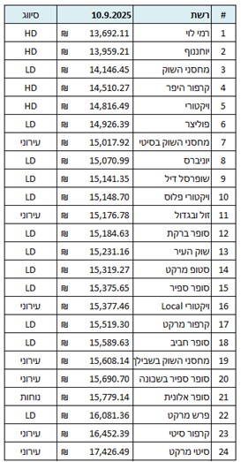 -הרשת העירונית הזולה ביותר מחסני השוק בסיטי והיקרה ביותר סיטי מרקט הפרש ביניהן 16%